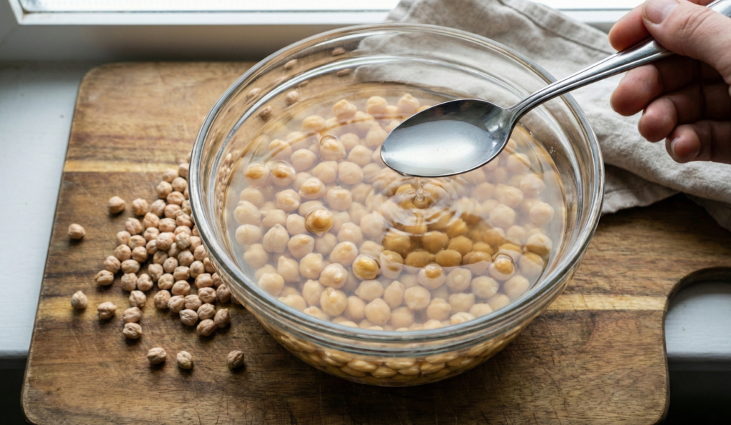 - Coloque o grão-de-bico em uma tigela grande (ele vai crescer muito, dê espaço).